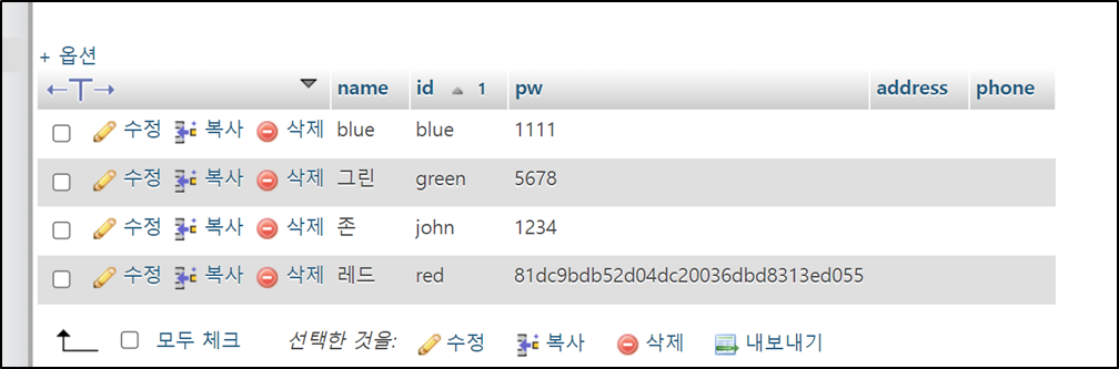 - 공격 시 삽입 구문: john' and '1'='1